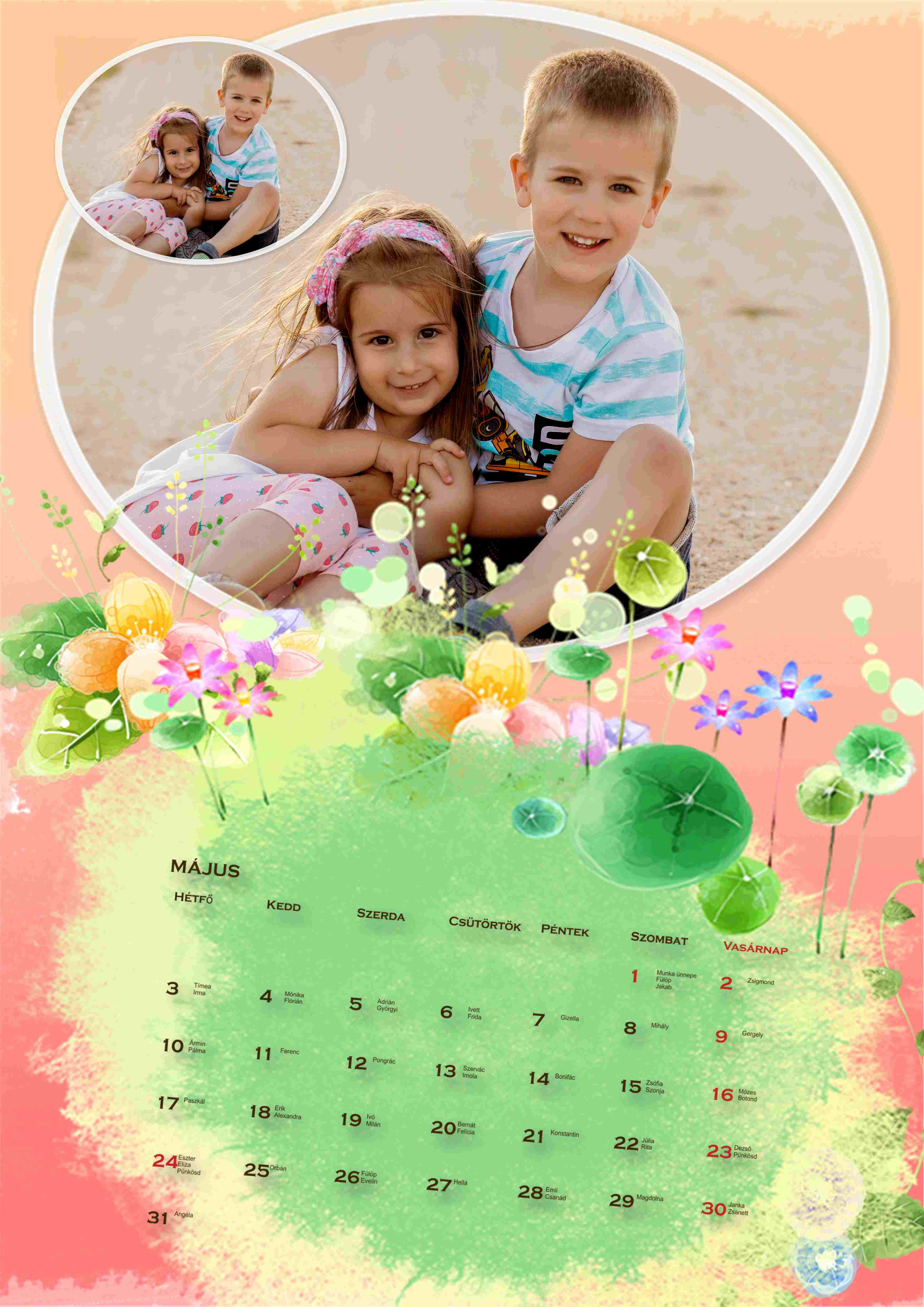Színes előlap színes naptár oldal  |
